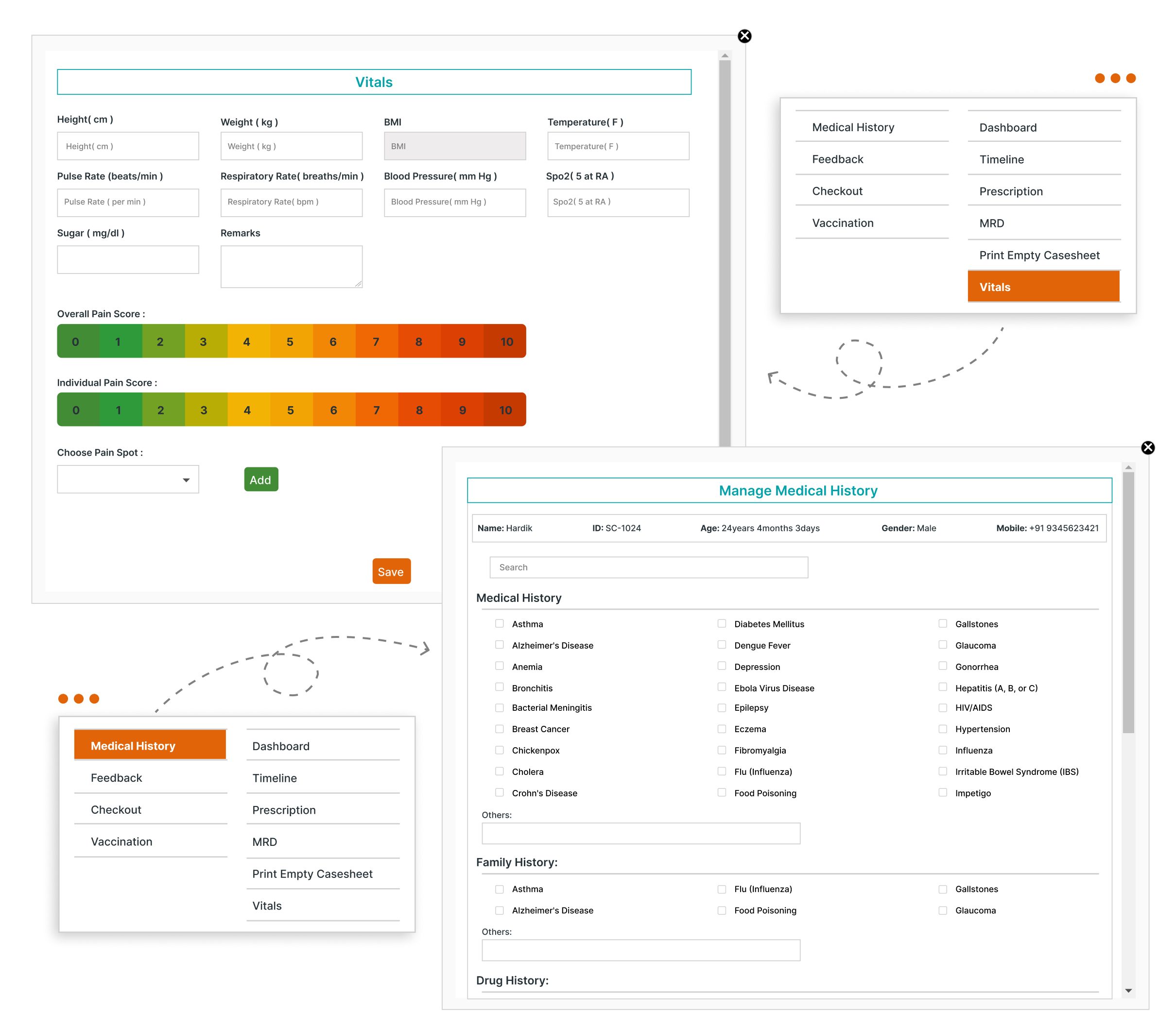 MocDoc simplifies the documentation and access of patient records, ensuring that medical histories are easily stored and retrieved by offering an intuitive and efficient process. Key functionalities include:
